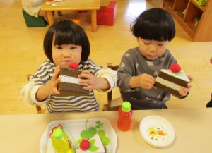 ぺんぎん組で遊んだよ! 2026/03/12ひがしふくま 『春になったらぺんぎん組(2歳児)になる!』と、とても 楽しみにしているかめ組の子ども達。 「お医者さんごっこがある~」「パズル した~い!!」と目をキラキラ輝かせて 遊んでいましたよ! ぺんぎん組でお茶を飲んだり、色々部屋中を 探険していました! 春になったらぺんぎん組さん!楽しみだね! 1歳児(かめ組)