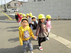 らいおん公園まで歩いたよ! 2026/03/23ひがしふくま まんぼう組さんだけで初めてらいおん公園まで行きました。 今まではいるかさんやくじらさんに手を引いてもらってのお散歩でしたが、この日はまんぼう組だけで お友達と手を繫ぎ、お話しながら歩いていましたよ! らいおん公園では木の実拾いや追いかけっこを元気いっぱい楽しみましたよ! 沢山遊んだ帰りは疲れが見える子もいましたが、止まることなく頑張って歩いていて1年の成長を感じました♪ 3歳児 まんぼう組