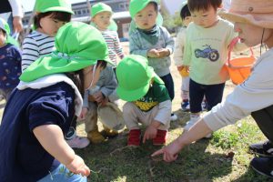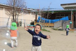 お外遊び大好き! 2026/04/15いろどり お外遊びが大好きなこのは組さん。 天気のいい日は戸外に出て、たくさん体を動かして遊んでいます。 「まてまて~」とシャボン玉を追いかけたり、 ダンゴムシやてんとう虫を見つけてみんなで観察したり、 暖かい春を感じながら楽しんでいる子ども達です! これからもたくさんお外で遊ぼうね! 1歳児 このは組