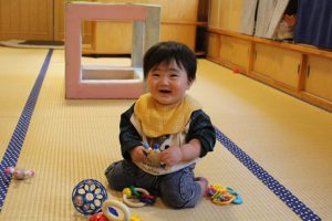 初めての保育園生活 2026/04/20いろどり みずたま組での生活が始まりました!新しい環境にも少しずつ慣れてきた子ども達。 気になる玩具に手を伸ばして触れてみたり、お部屋の中をずり這いで移動したりと探索活動を楽しんでいます。 天気の良い日にはバギーに乗って園庭を散歩し、外気浴も楽しみます。 五感への刺激もあり保育室とはまた違った面白さ・心地良さがありますね。 ポカポカ陽気の中、春の風を感じながら気持ち良さそうに笑う子ども達でしたよ。 これからもみんなでいっぱい遊ぼうね! 0歳児 みずたま組