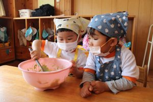 匂いや混ぜる時の感触を楽しみながらクッキングを行いました。