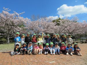 春をみつけたよ!! 2026/04/13真愛 ダム公園まで桜を見に行ってきました。 満開の桜を見て「さくらさいたらいちねんせ~♪」と嬉しそうに歌っていた子ども達です。 散歩の途中でタケノコ探しも楽しんでいます! キリン組(4歳児)